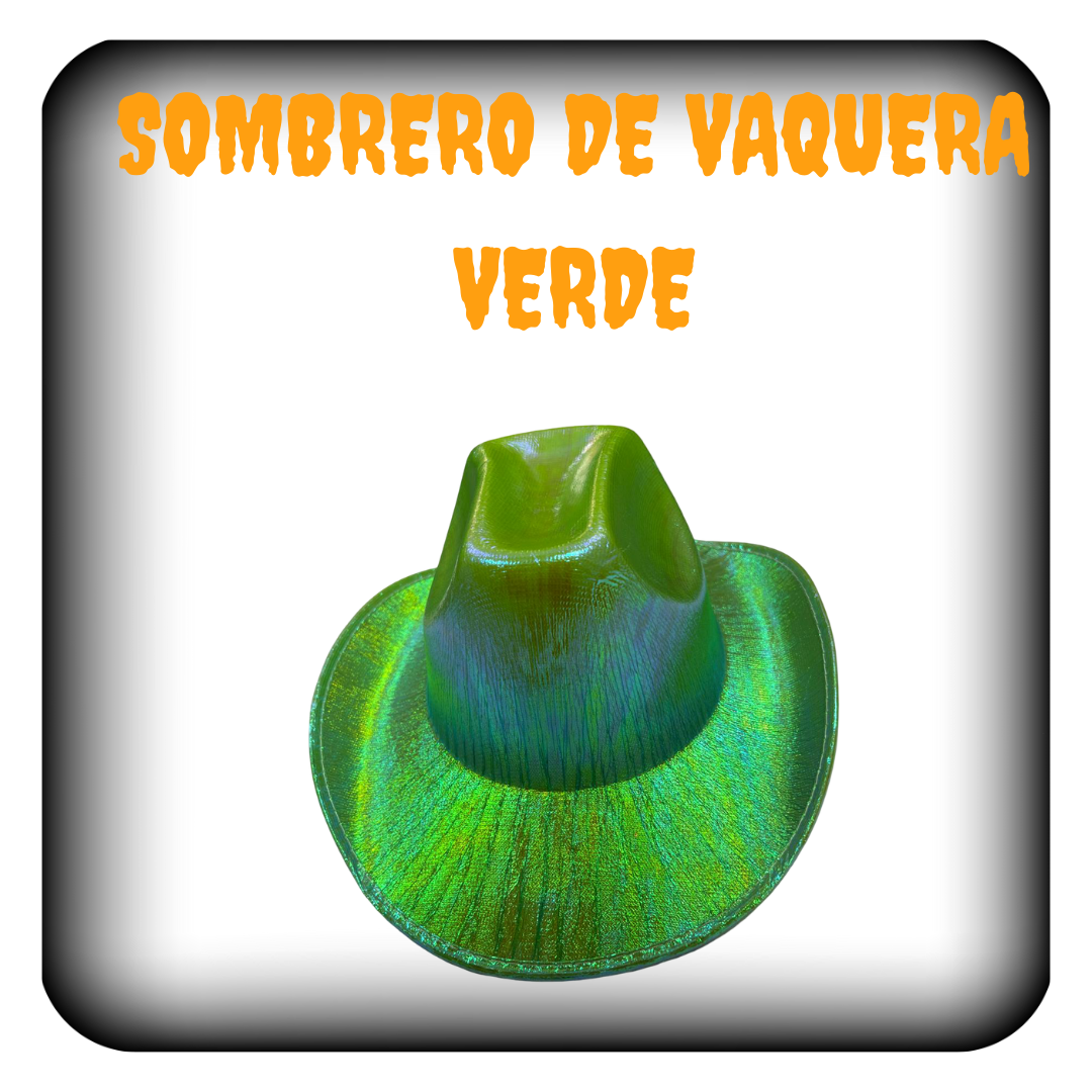 Dale un toque único y llamativo a tu estilo con este sombrero de vaquera en acabado tornasol, que refleja distintos colores según la luz. Fabricado en plástico liviano y resistente, ofrece comodidad y durabilidad, ideal para fiestas, disfraces, temáticas western o como accesorio divertido para eventos.